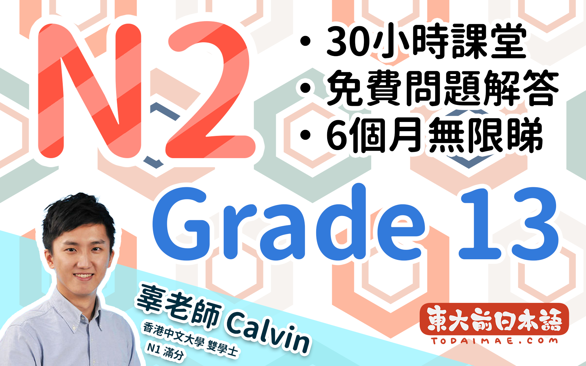 希望報讀 JLPT N2 考試但又尚未開始複習?不用擔心!東大前現推出了 JLPT N2 考前對策課程,總計 50 小時,由本校皇牌老師 Calvin 老師 以廣東話及日語帶大家重點學習 JLPT N2 所涵蓋的文型,集中並清晰地講解不同文型之間的差異。除此之外,更會和同學們解說過去試題中容易犯錯的 N2 題型及文法,讓大家在半年內內充份備戰好能力試驗!