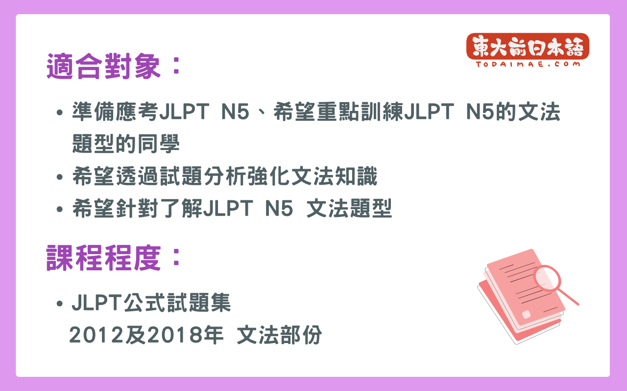 - 想復習或準備JLPT N5考試的同學 Students who want to review or prepare for the JLPT N5 exam