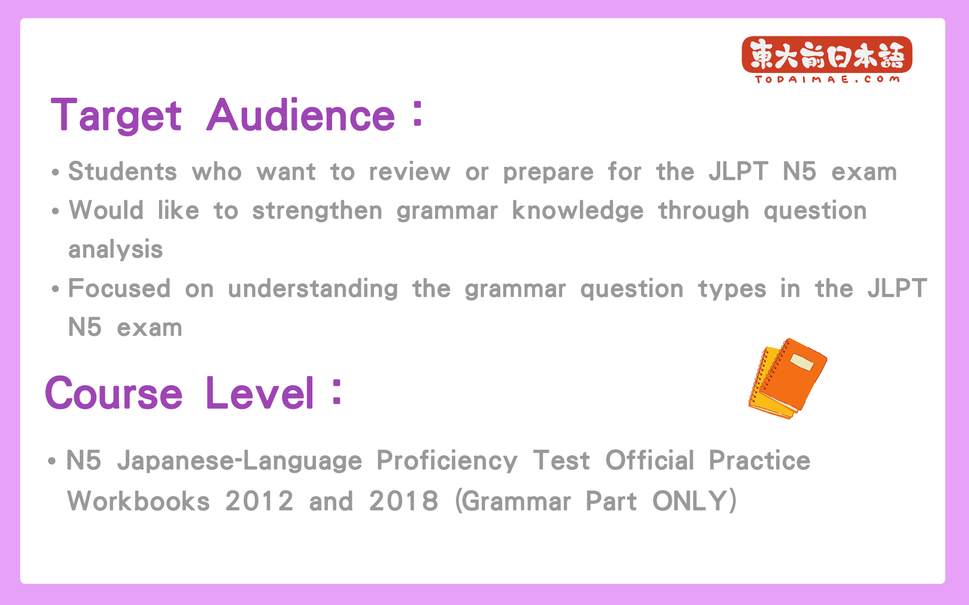 - Focused on understanding the grammar question types in the JLPT N5 exam
